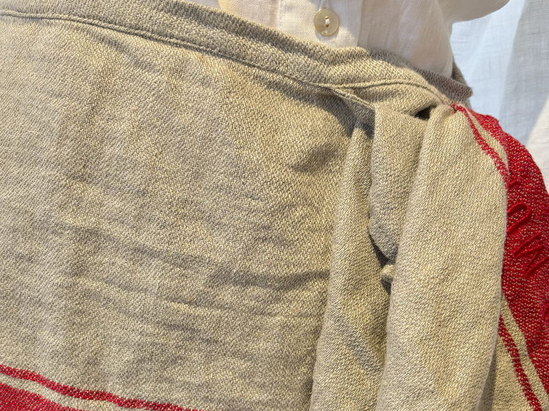 Nemt at svøbe omkring sig inden madlavning. Forstykket har en lille hank så du kan have viskestykket tæt på.